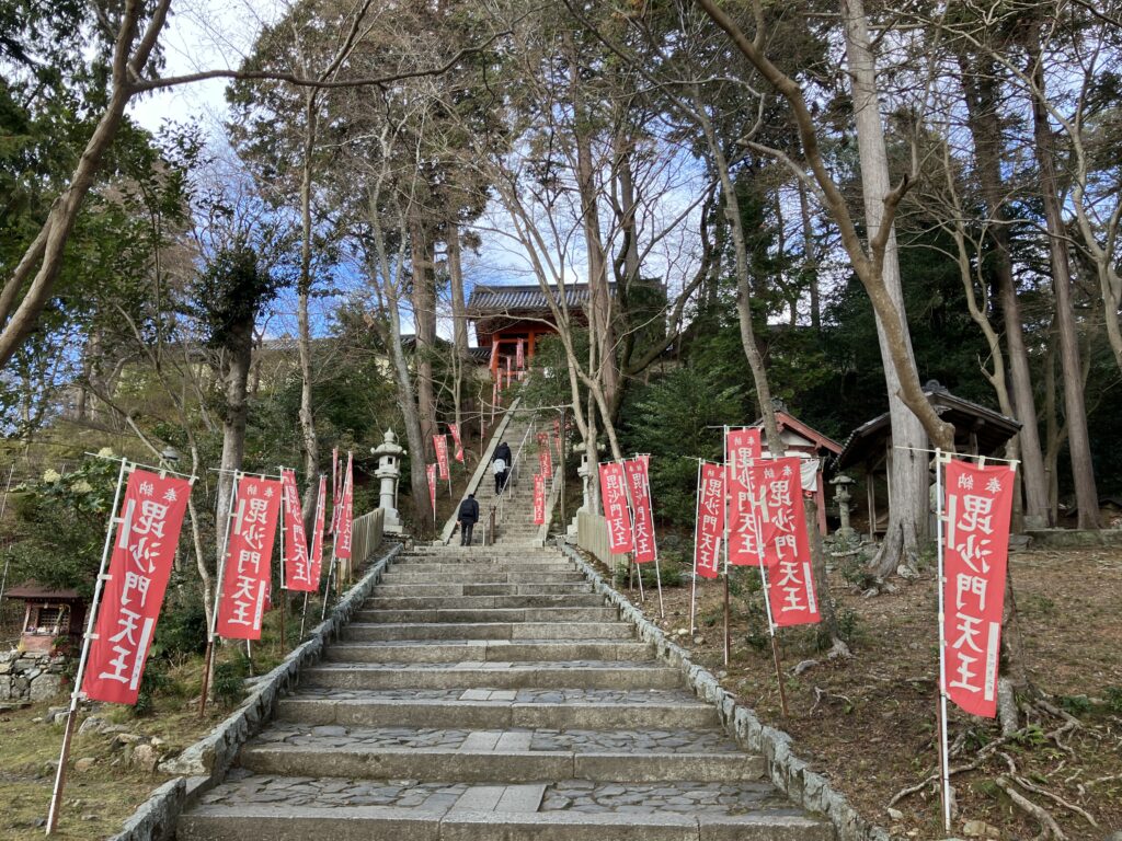 そこから北へ坂道をのぼること約15分で毘沙門堂の石段